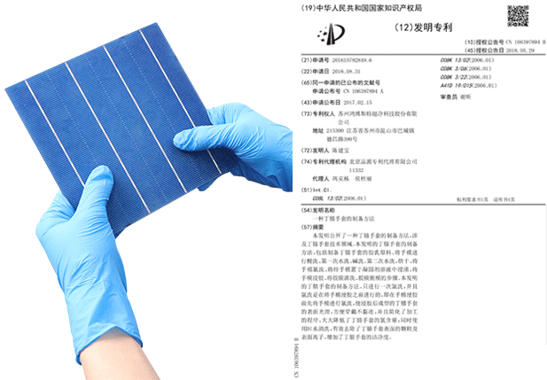 手套經(jīng)過特殊工藝處理,通過驗(yàn)證將手套放置氮?dú)夤癞?dāng)中80H,手套接觸產(chǎn)品無任何氧化情況,經(jīng)權(quán)威機(jī)構(gòu)檢測氯元素及硫元素完全符合接觸電池片標(biāo)準(zhǔn),且不會在電池片上面留下任何指印。